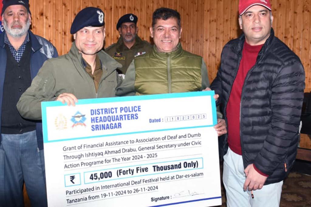 Under Civic Action Programme, SSP Srinagar Shri Imtiyaz Hussain handed over a laptop to specially-abled lady resident of Eidgah Srinagar and cheques among the beneficiaries. Besides, provided financial assistance to Association of Deaf & Dumb and 10 specially-abled cricket players.