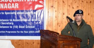 Srinagar, February 14: Police in Srinagar distributed a laptop to specially-abled lady and grant of financial assistance to Association of Deaf and Dumb & specially-abled cricket players.
