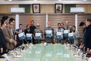 JAMMU, DECEMBER 22: Chief Minister Omar Abdullah today released a coffee-table book titled ‘Samnvay’, which showcases the digital transformative journey of Jammu and Kashmir and documents the key projects and technological contributions of the Bhaskaracharya National Institute for Space Applications and Geo-informatics (BISAG-N) in J&K.