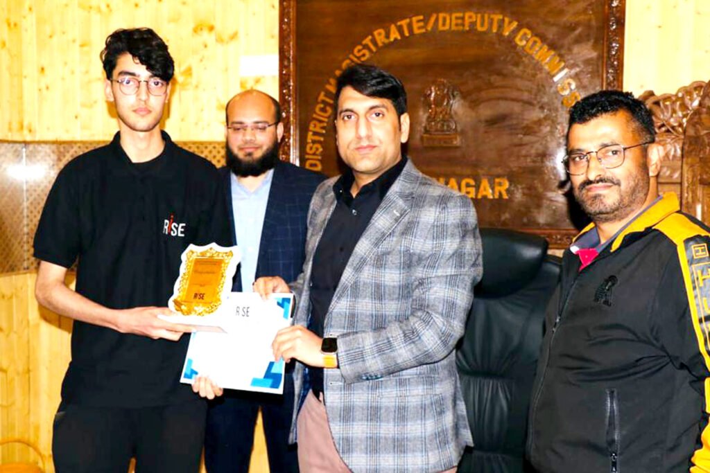 SRINAGAR MAY 08: In order to encourage the meritorious students and to boost their morale, the Deputy Commissioner Srinagar, Mohammad Aijaz Asad today felicitated four students from RISE Institute who have achieved a remarkable feat by securing an outstanding score of 99+ percentile in the Joint Entrance Examination (JEE) Main 2023.