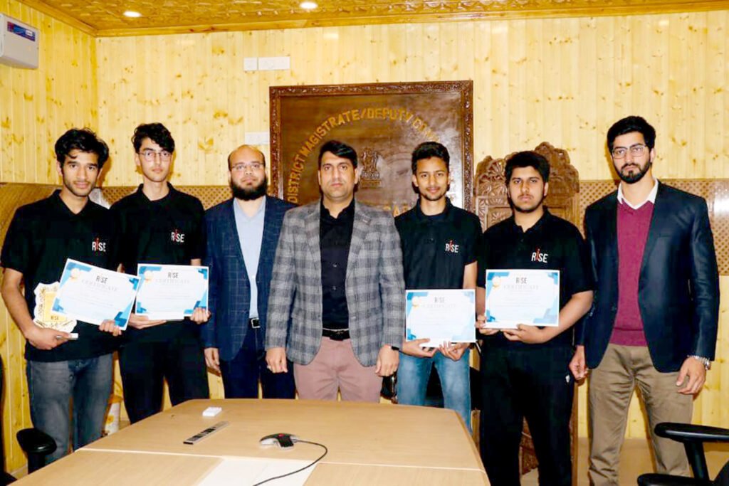 SRINAGAR MAY 08: In order to encourage the meritorious students and to boost their morale, the Deputy Commissioner Srinagar, Mohammad Aijaz Asad today felicitated four students from RISE Institute who have achieved a remarkable feat by securing an outstanding score of 99+ percentile in the Joint Entrance Examination (JEE) Main 2023.