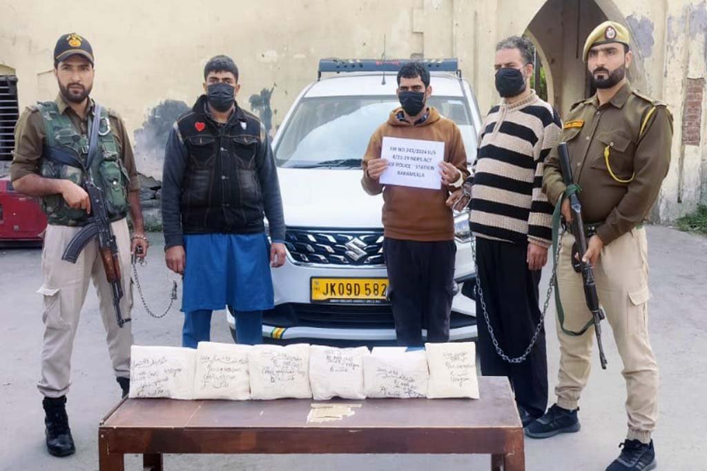 Baramulla, October 29: In a major operation against drug trafficking, Police in Baramulla seized 2.7Kgs of Heroin worth 20 crores and arrested three key figures of a heroin smuggling ring.