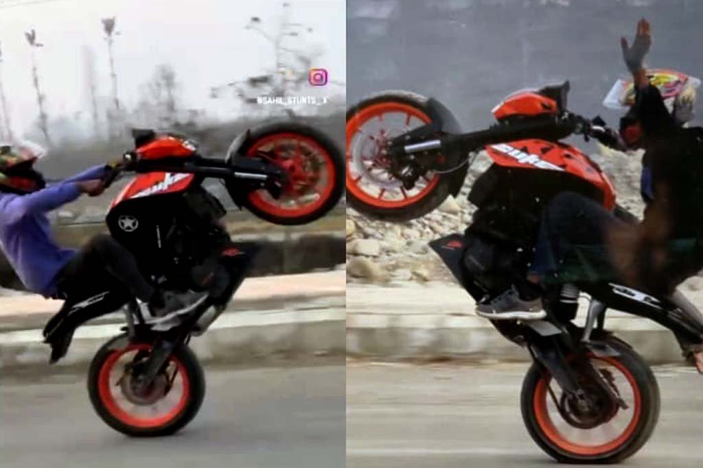 The accused rider, Sahil Farooq Sheikh son of Farooq Ahmad Sheikh, resident of Pehlipoora, Shopian, was found indulging in dangerous stunt biking on a public road, thereby endangering his own life as well as the safety of other road users. Such activities are unlawful and will be dealt with strictly under the relevant provisions of law.